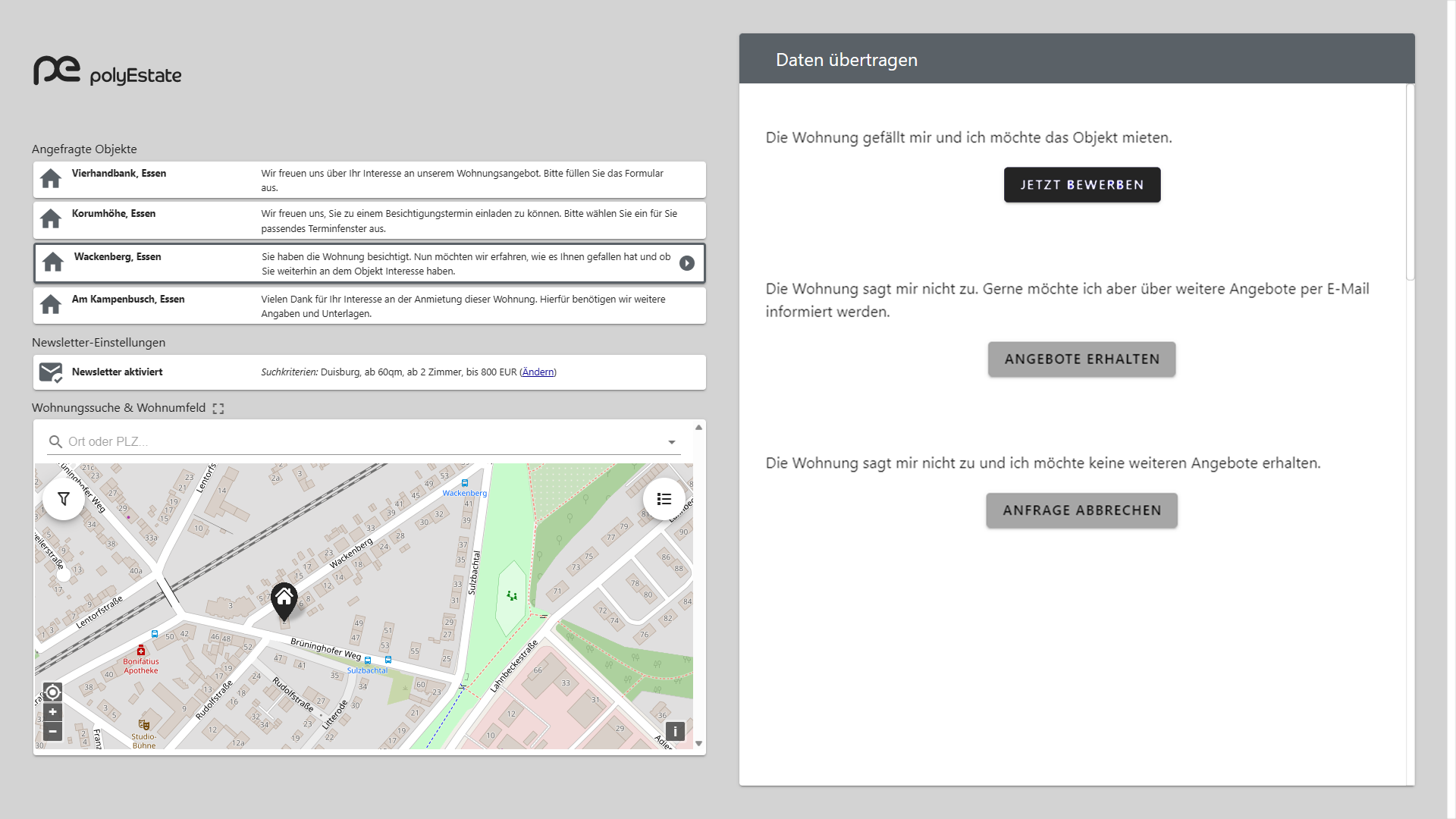 Digitale Bewerbung und Mietvertragserstellung oder Wunschprofil mit Alternativangeboten