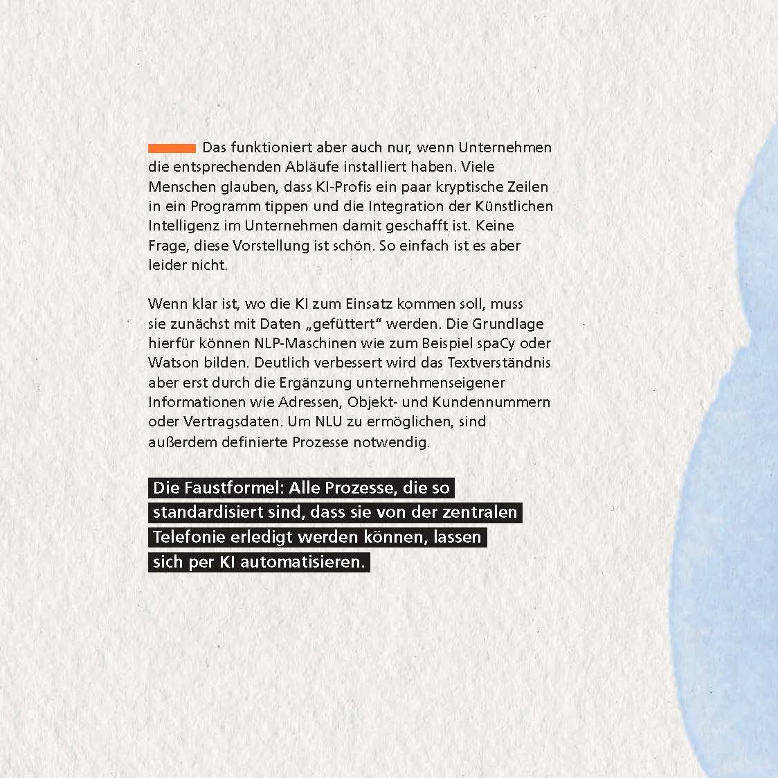Das System kann auch mit Sprachnachrichten umgehen. Die Technik dahinter heißt Speech-to-Text (STT) und Text-to-Speech (TTS). Wie das geht? Die gesprochene Sprache wird in Text umgewandelt und wie eine Textnachricht bearbeitet. Das System antwortet abhängig vom Kanal, über die die Anfrage kam: In textbasierten Kanälen wie Messengern mit einer Textnachricht, bei Einbindung in Ihre Telefonanlage auch mit Sprache.